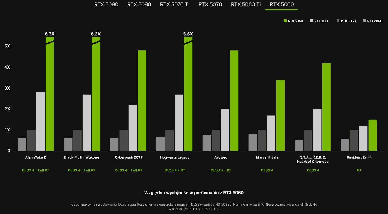 | Model | RTX 5060 | RTX 4060 | Poprawa |